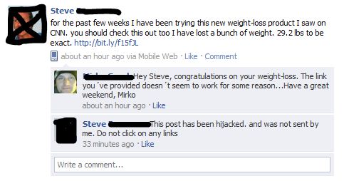 4. Seperately they then login as you and make posts as you to which all your friends click on and it takes then to another site where your visit or purchase makes the hijacker money.